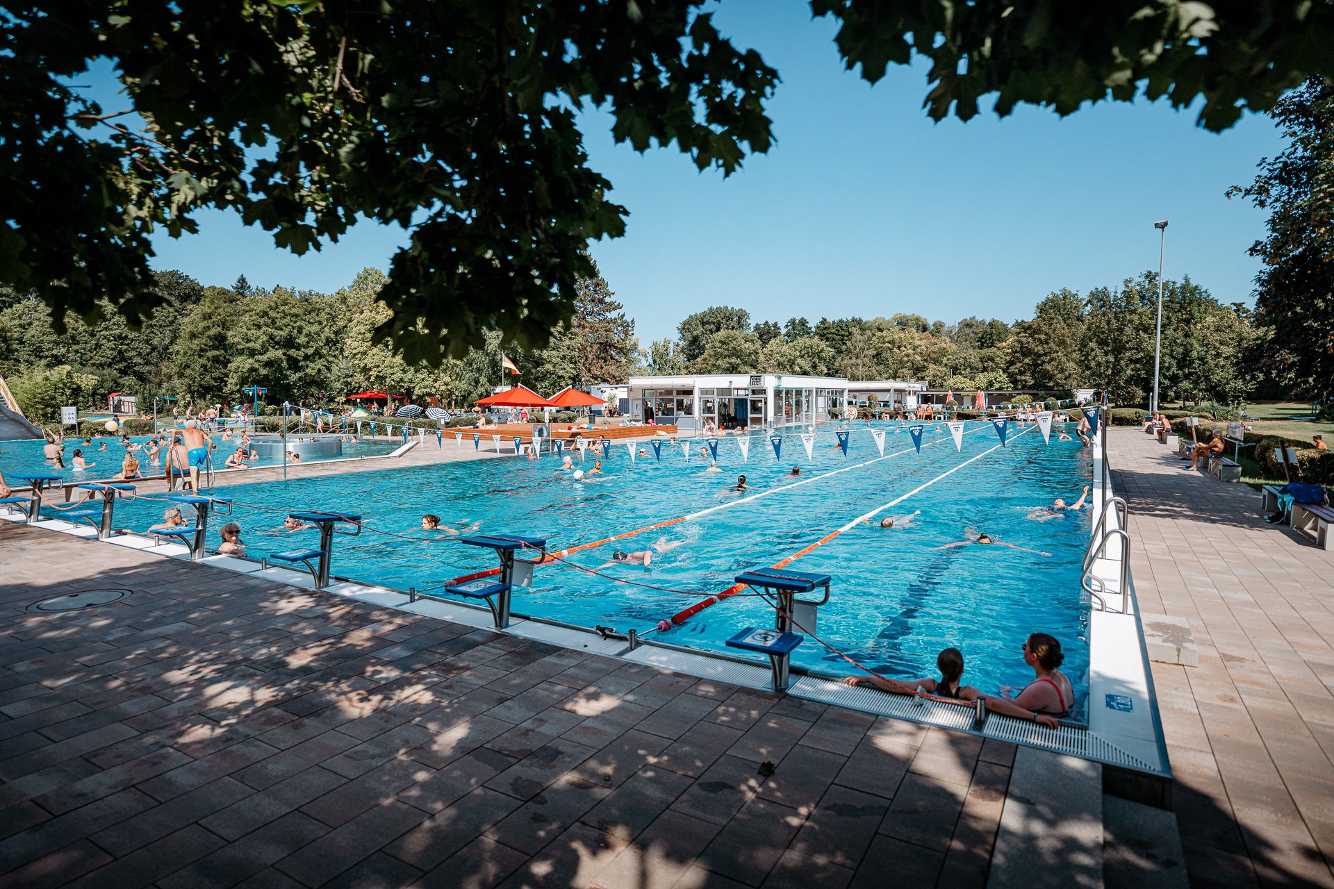 Im Sportschwimmbecken Meter machen oder im Nichtschwimmerbecken planschen – und das bei angenehmen 26 Grad.